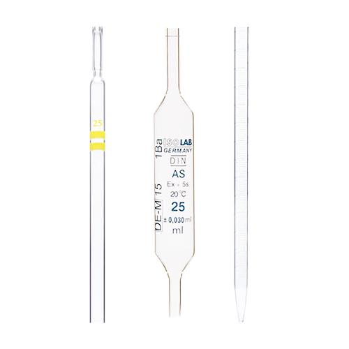ISOLAB BULLU PİPET; Üretim en yüksek kalitede DİN 12687, DİN 12699 ve ISO 835-648 standartlarına uygun olarak bilgisayar programlı kalibrasyon cihazları ile yapılmaktadır. Alternatif 2 ürün 1. Dereceli pipetler 2. Bullu pipetler Hassas ve titiz kalite kontrol sistemi, ürün standartlarının doğruluğunu sürekli olarak kontrol ve garanti etmektedir. Boşalttıkları sıvının hacmine göre (to deliver - "ex) ve DİN/ ISO Class "AS standartlarına uygun olarak kalibre edilirler. Conformity grup sertifikasına sahip büretlerin gövdeleri üzerinde grup (lot) numarası basılıdır. Grup sertifikalarına internet sitesi üzerinden ulaşılabilir. Pipetler üzerindeki baskılarda, cam için özel olarak üretilen mavi boya kullanılmaktadır.