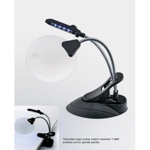 Çok amaçlı masa üzeri büyüteç bakış ve tutuş açısına bağlı olarak 3X ve 5X büyütme olanağı sağlar.