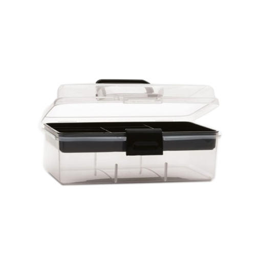 Küçük boyutlu malzemelerin, saklanmaları ve taşınmaları amacı ile polipropilenden üretilir. Gövdeye kenetlenerek kapanan kapak, tam ve sıkı kapatımı garantileyerek kutu içeriğini toz, nem ve diğer dış etkenlerden korur. Şeffaf gövde yapısı, kutu içini gösterdiğinden kutunun kullanımı sırasında kolaylık ve güven sağlar. Katlanabilir kulp, gövdeye yapıştığından kutular istendiğinde üst üste istiflenebilirler. 180° açılabilen kutu kapağı kutu içeriğine kolay ulaşım ve kolay temizlenme garantisi verir. Çeşitli şişelerin, kapların ve benzer eşyaların saklanması ve taşınması amacı ile polipropilenden üretilir. Çok amaçlı kullanıma uygun iki adet bölme ile donatılmıştır. Bölmeli ve çıkarılabilir tepsi kutu içeriğinin düzgün yerleşimine olanak verir