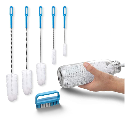 Değişik ebatlarda 6 adet Fırça; PET Fırça, Galvanizli Tel, Polipropilen Saptan imal edilmiştir. Deney tüpü, erlen, beher, balon... ve benzeri ürünlerin temizliğinde kullanılır. Bükülebilir özelliği sayesinde rahat kulanım ve nitelikli temizlik sağlar.