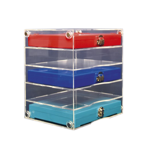 5 adet lam kutusu taşıma kompartımanlı olarak akrilikten üretilirler. Lam kutularının üst üste yerleştirilip kaldırılmaları için pratik çözüm sunar. İstenilen kutuya kolay erişimi sağlarlar. İstendiğinde yan yana dizilerek uzun sıra oluşturabilir. Benzer şekilde üst üste konduklarında yerden tasarruf sağlar.