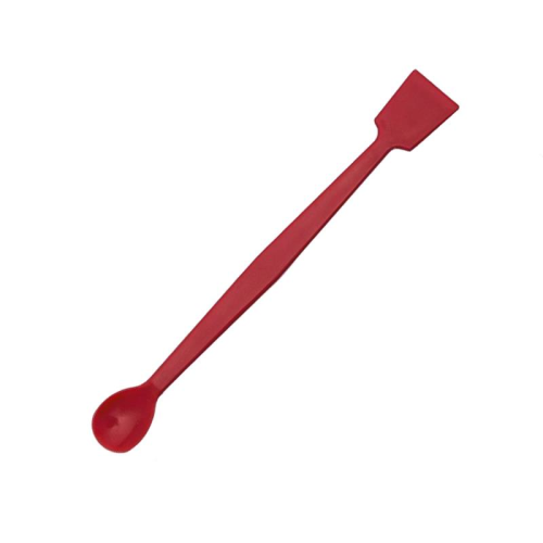 Bir ucunda orta ve geniş çaplı partiküllerin için makro kaşık diğer uçta ise yassı/düz spatül ile üretilmiştir